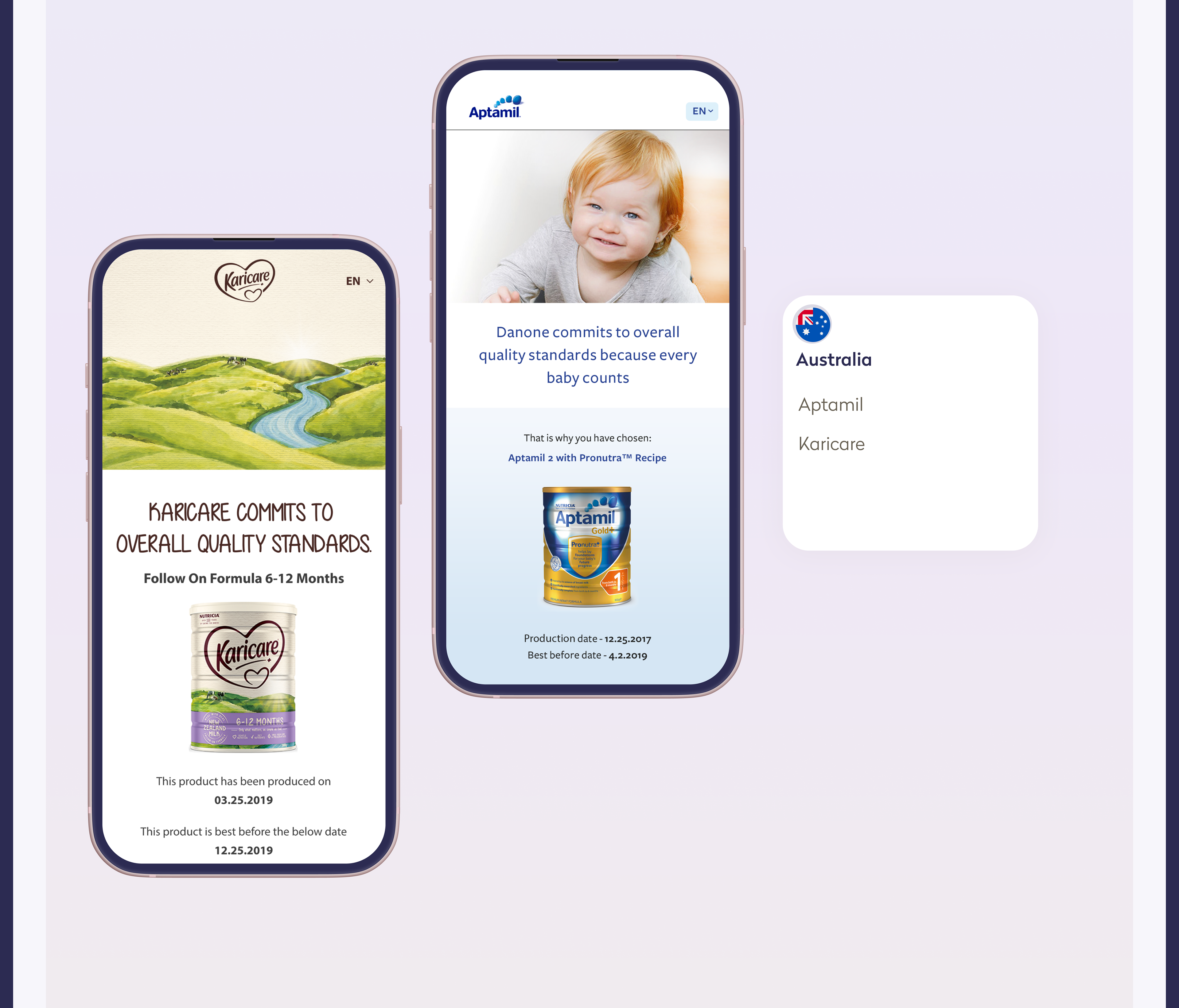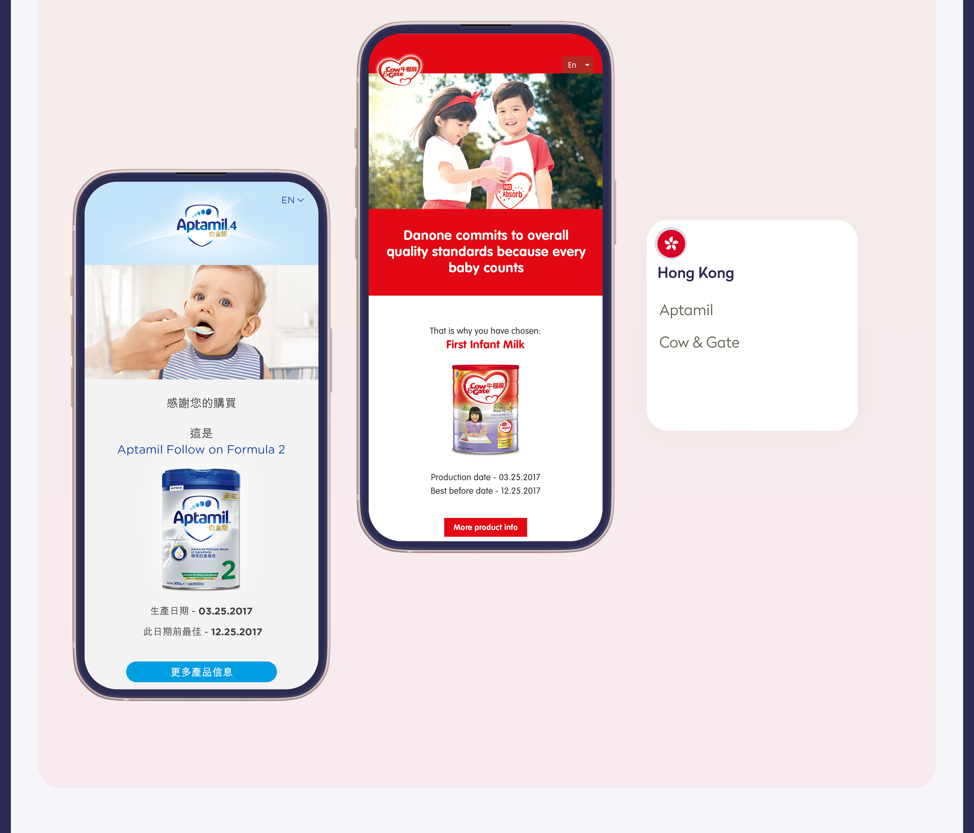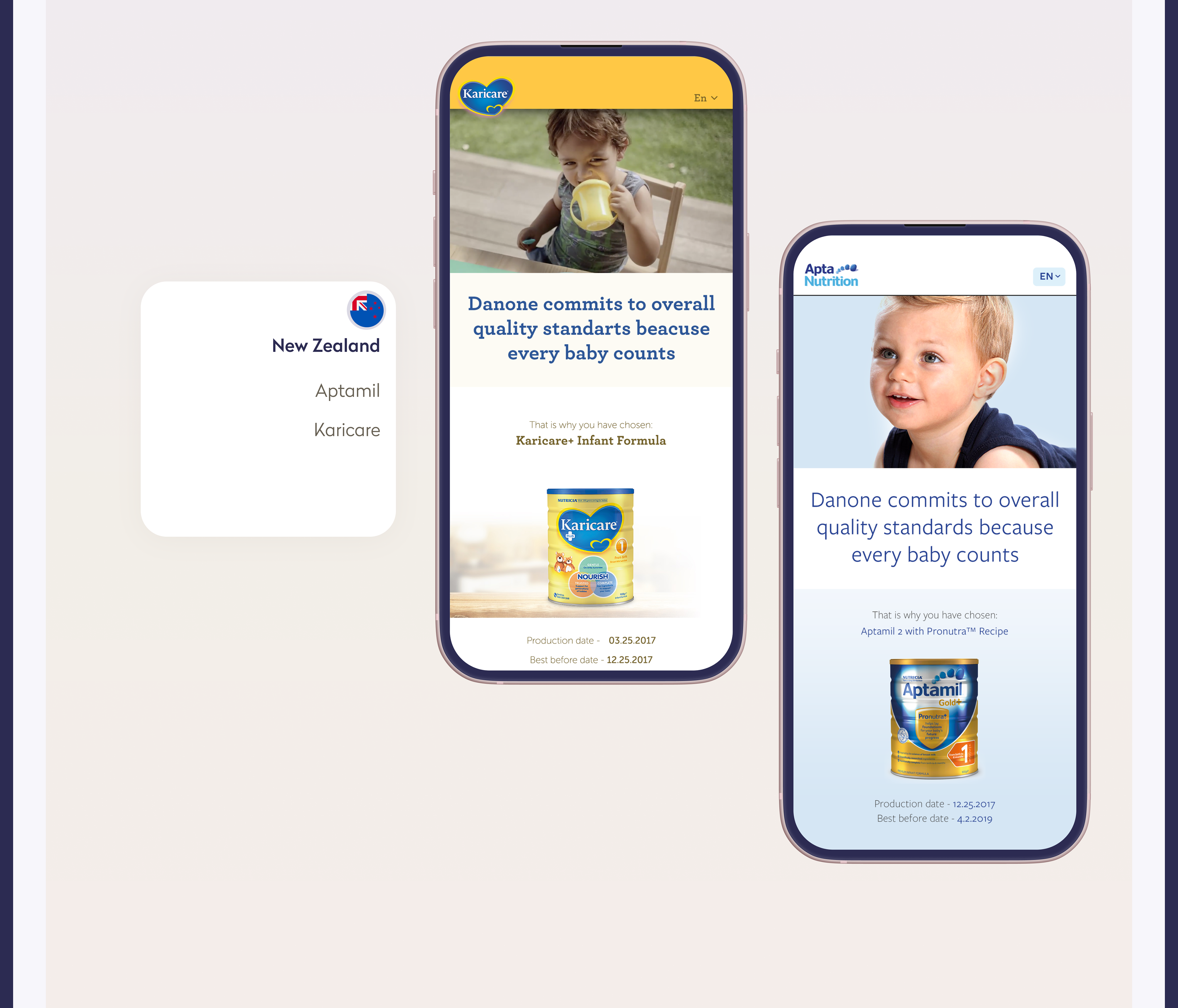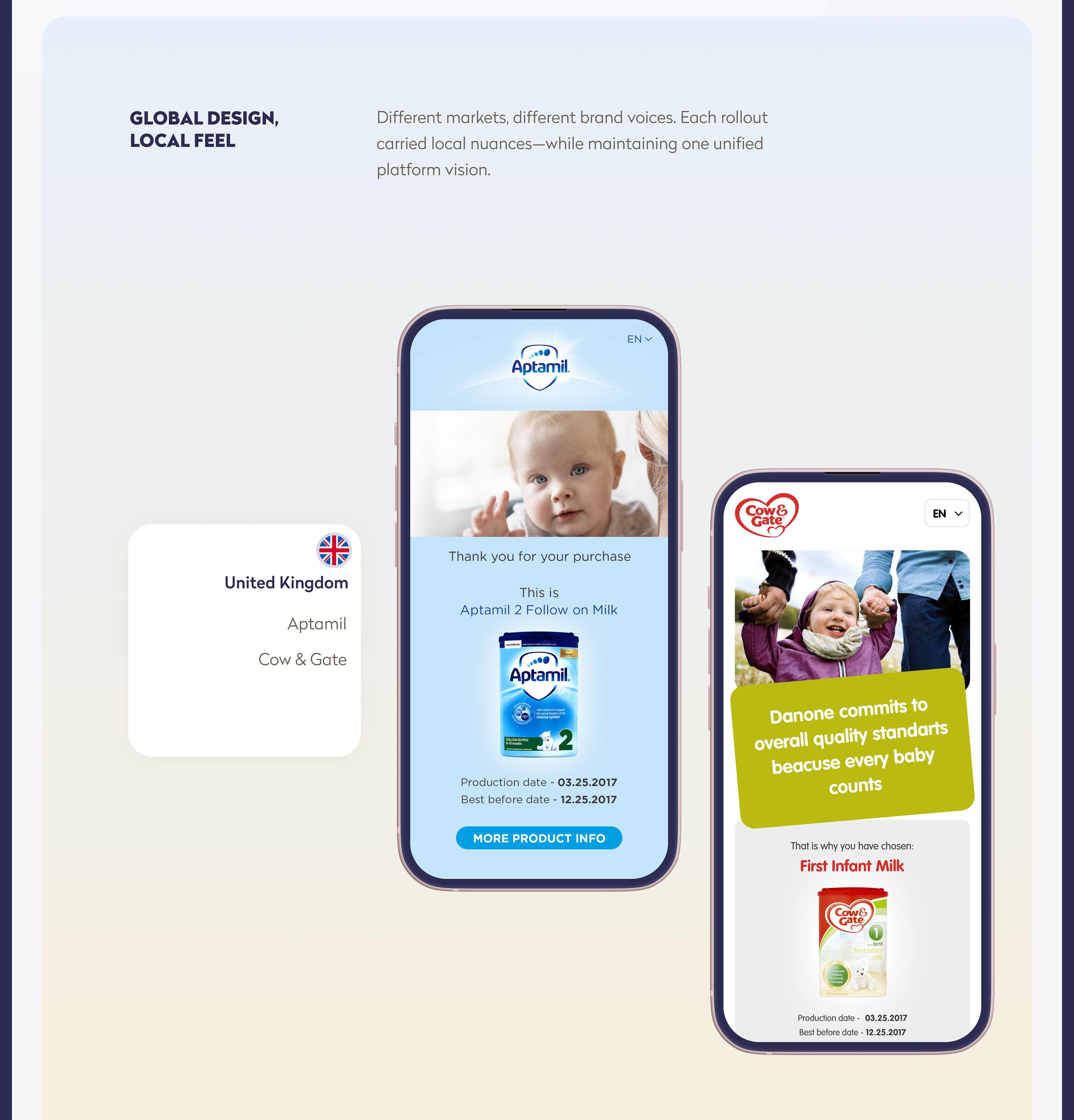 Track & Connect is Danone’s digital traceability platform that enhances product transparency and builds consumer trust. By utilizing smart packaging, blockchain, and mobile interactions, it redefines family engagement with everyday products. As the lead design partner, we shaped the digital experience from concept to execution, collaborating with Danone’s teams to create a seamless, user-friendly interface. We led the UX and UI design for the mobile interface and QR interaction journey. Our scope also included wireframes, responsive layout design, user testing, and localization for multiple markets.