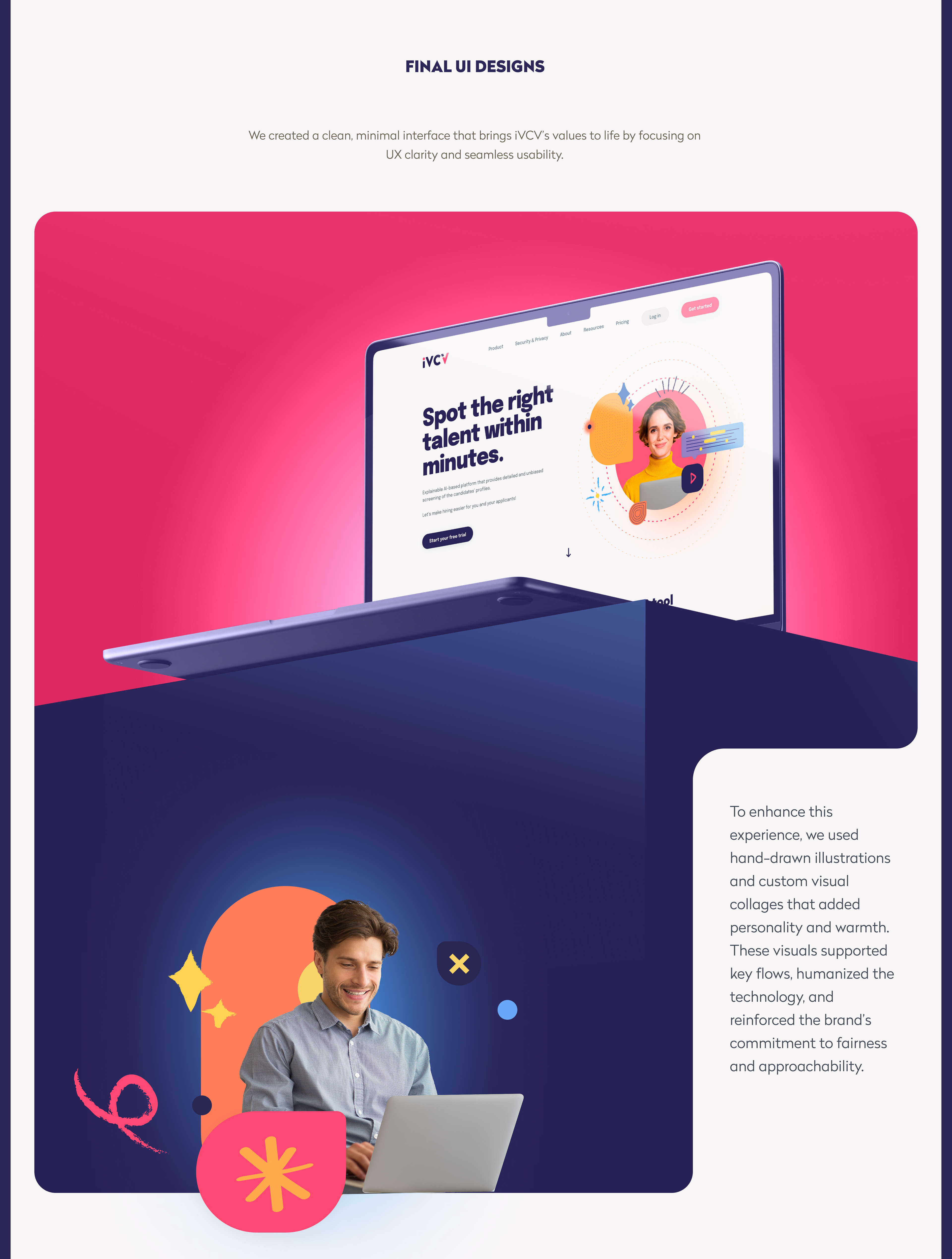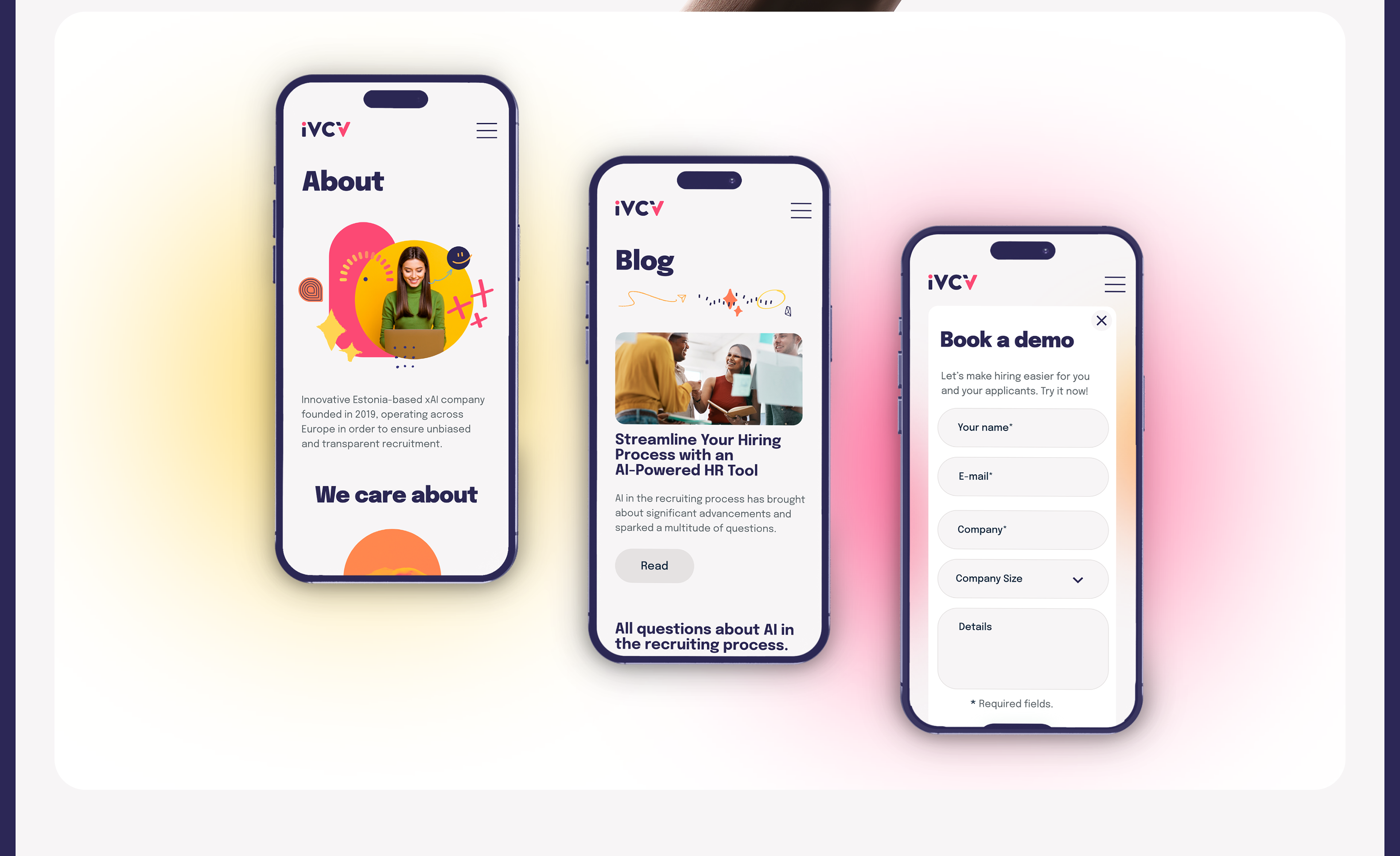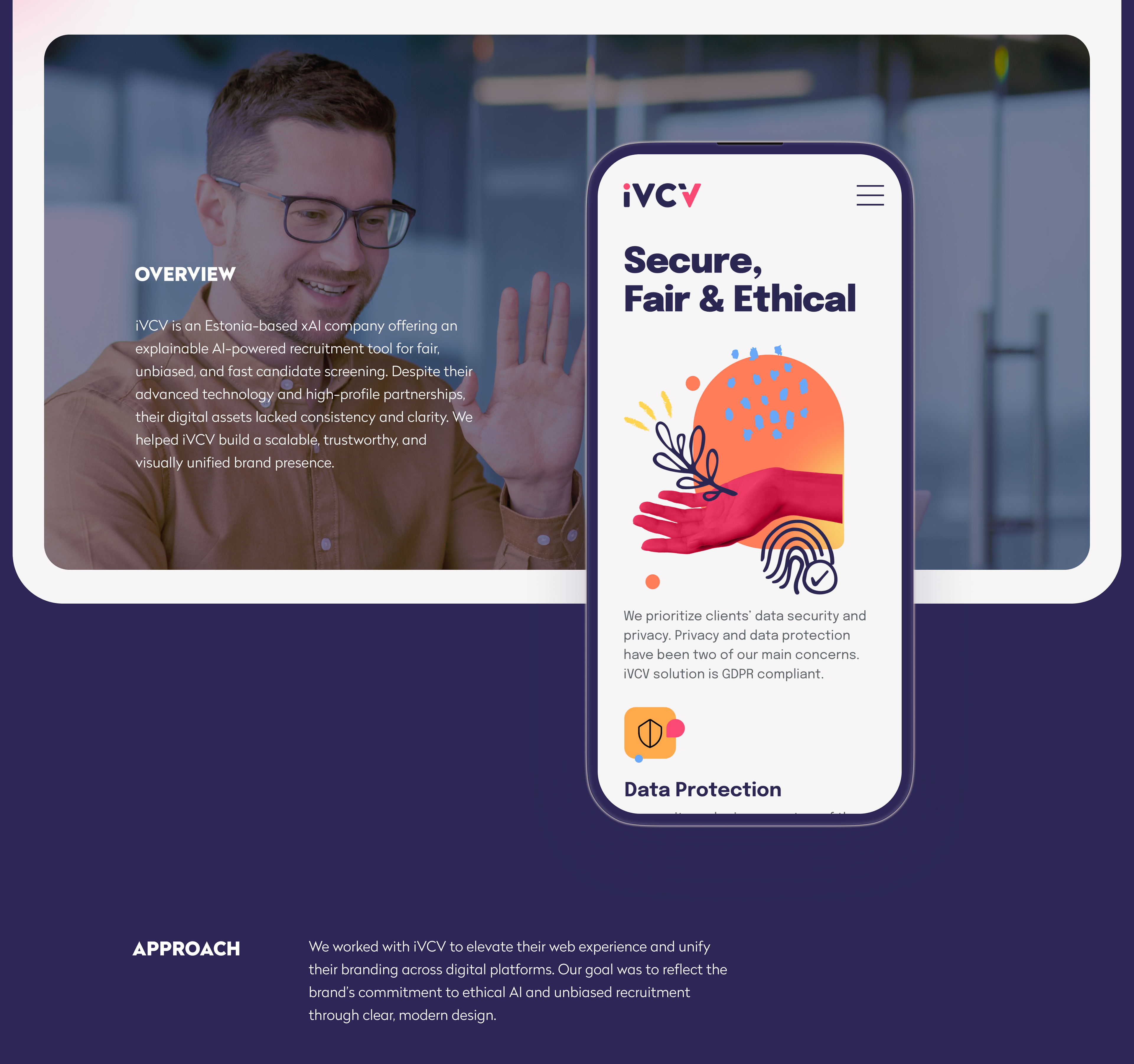 We helped iVCV, a pioneer in ethical AI recruitment, bring coherence to their digital presence. Through clean UX, modern branding, and warm illustrations, we built trust into every interaction.