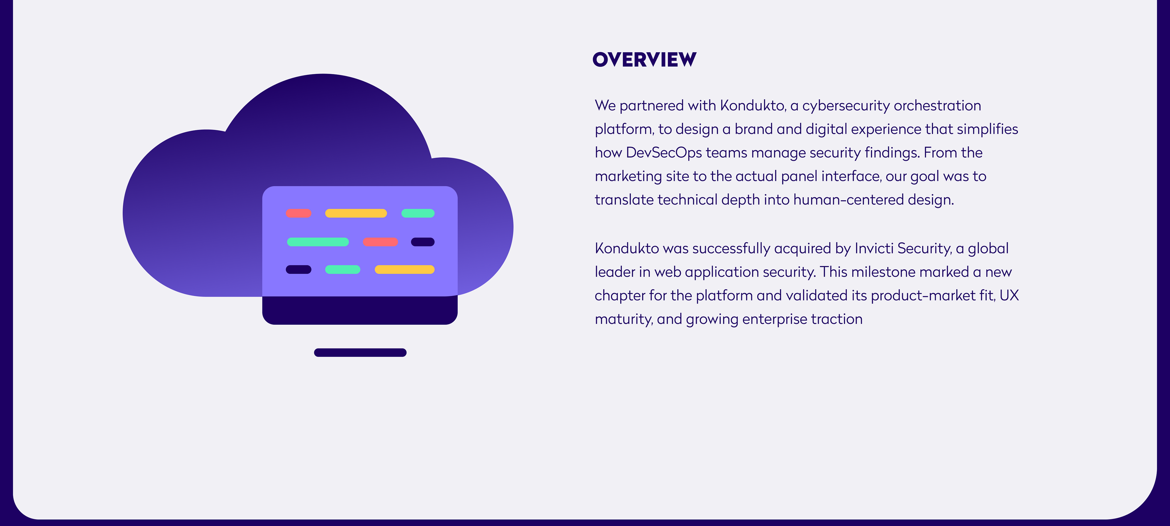 We helped Kondukto reshape its cybersecurity orchestration product with a new brand identity, website, and a streamlined panel interface focused on clarity, control, and usability.