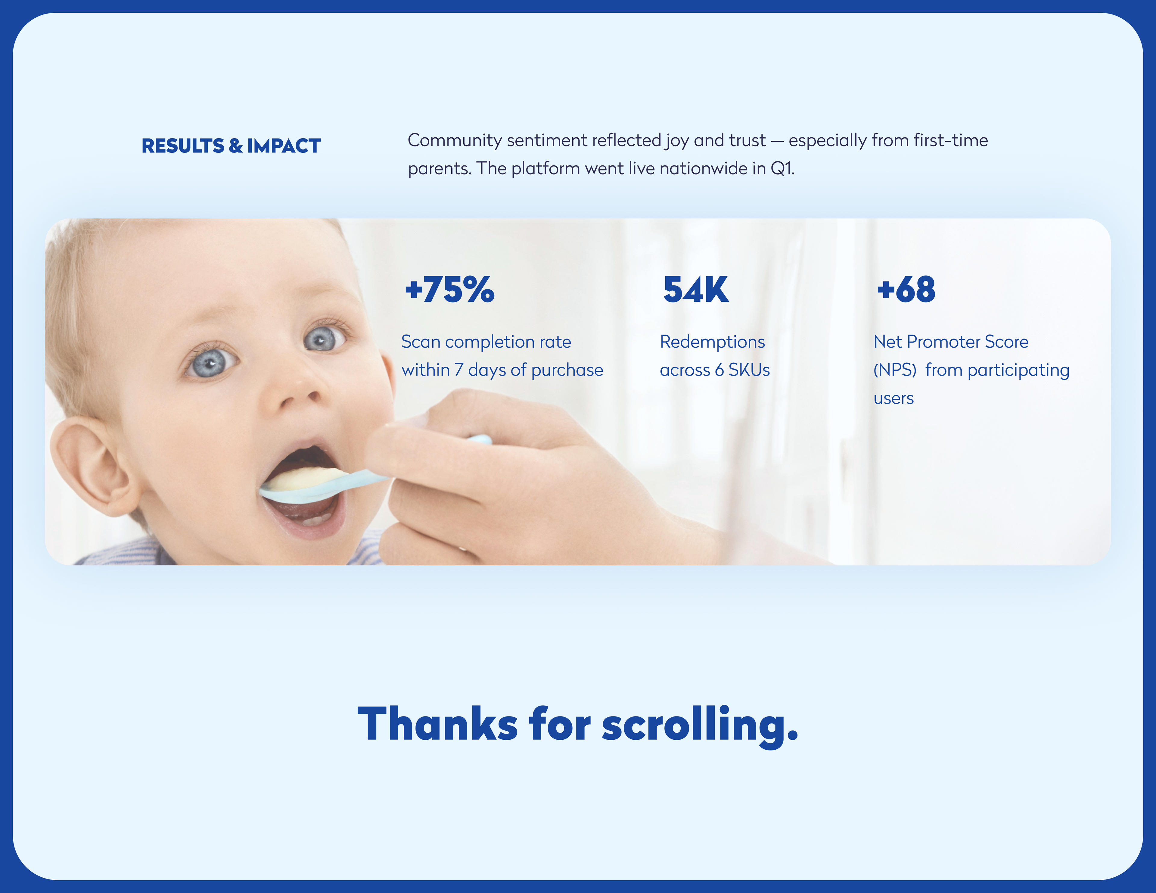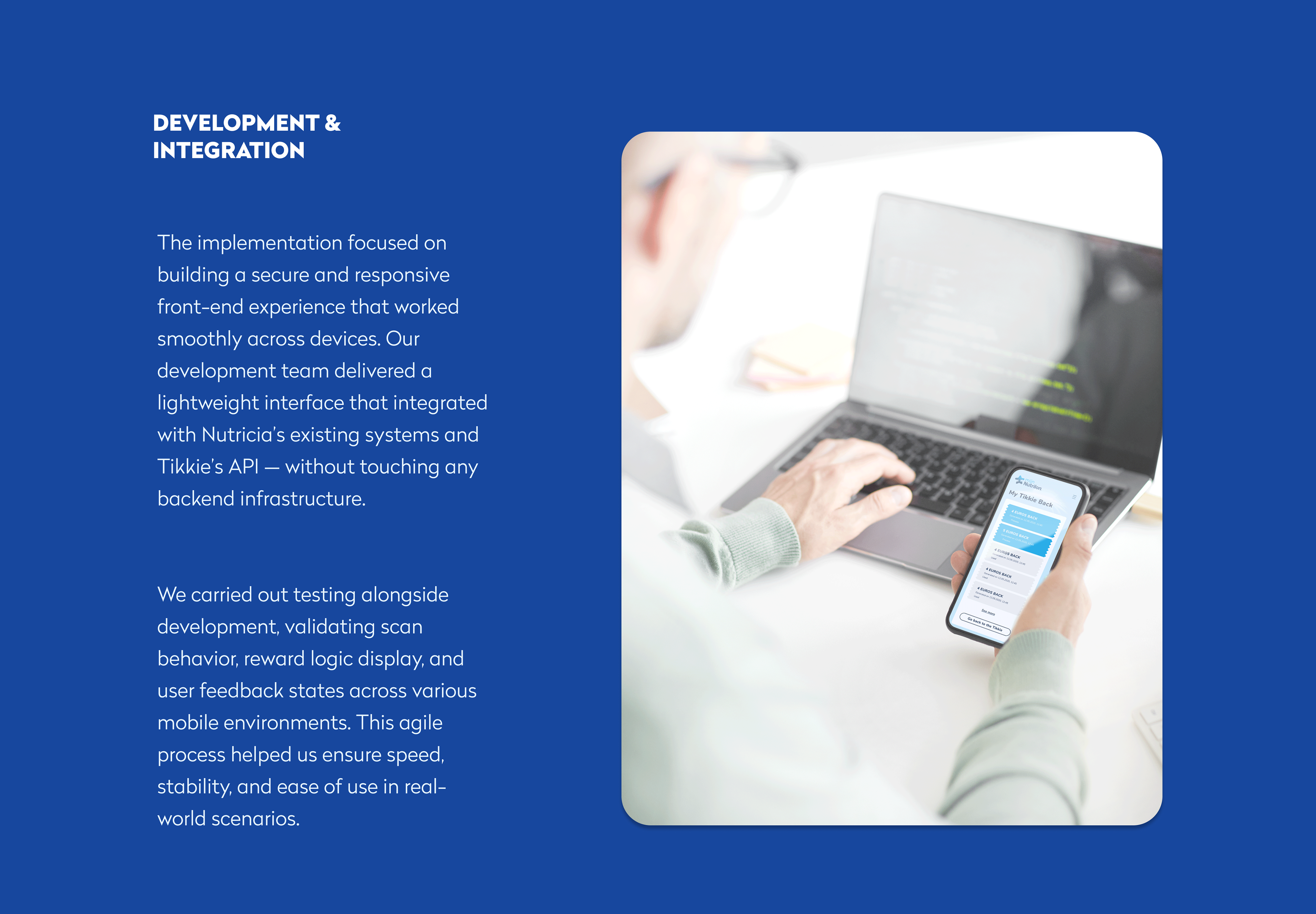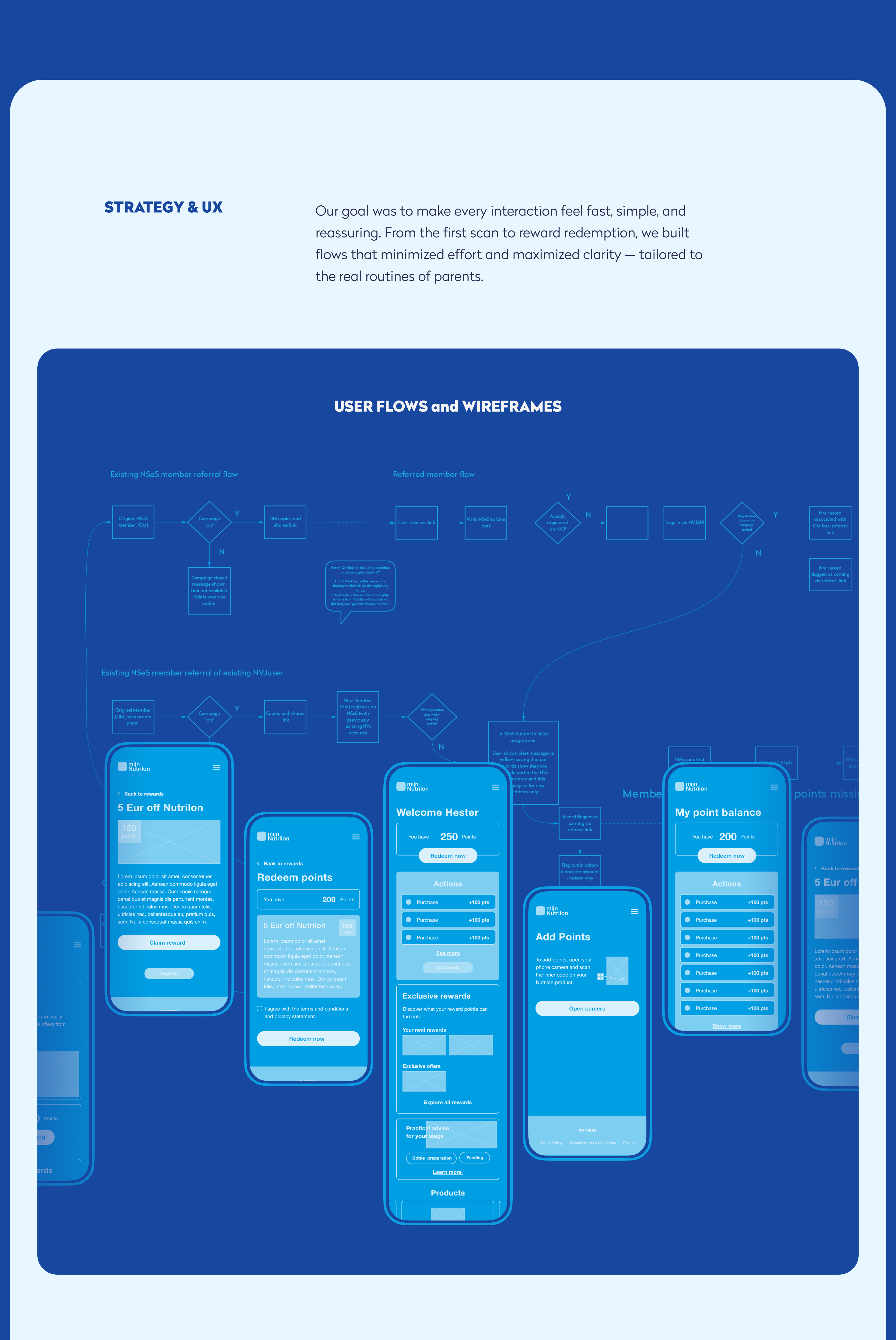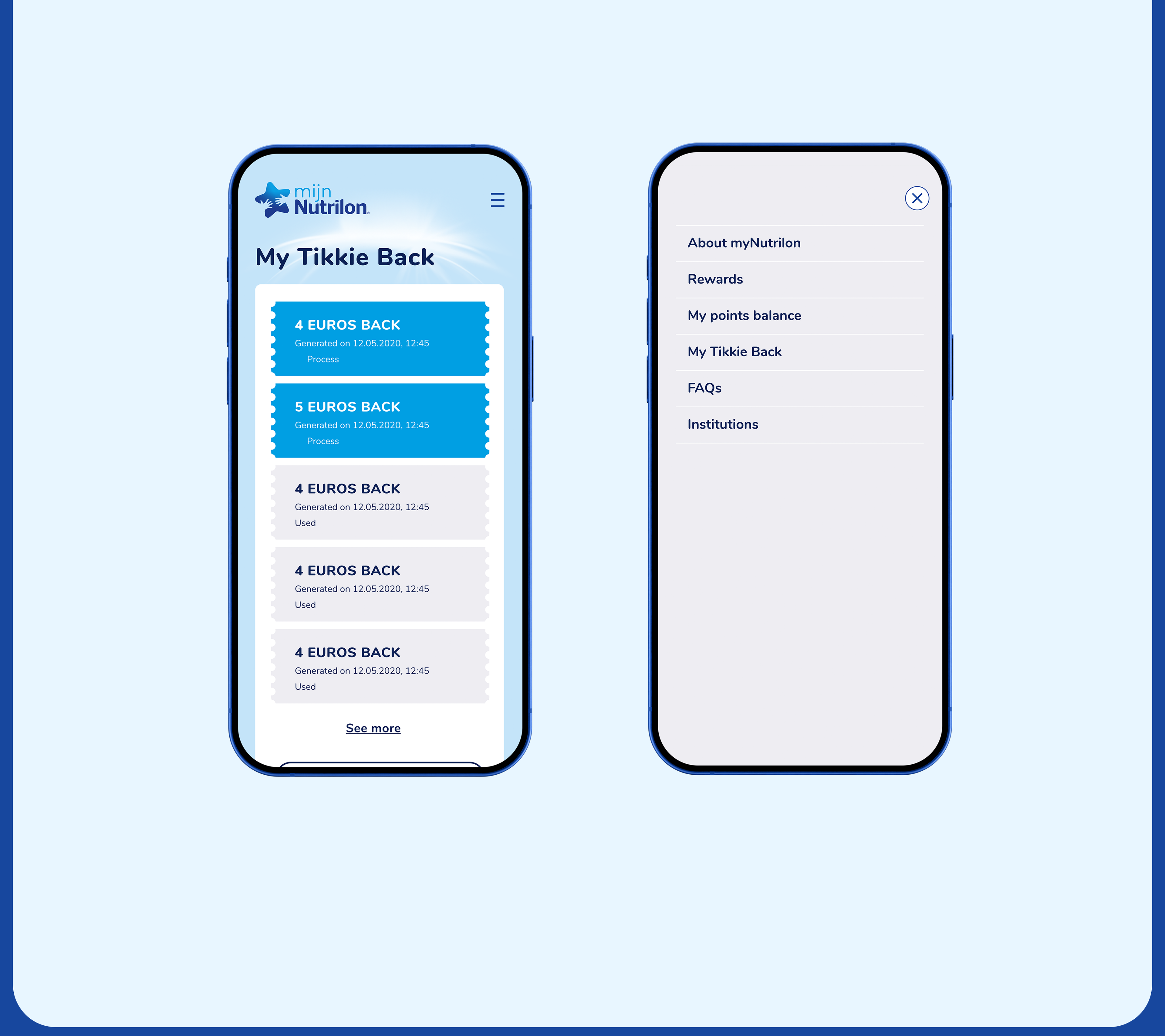 Nutrilon Scan & Spaar is a loyalty platform for Dutch parents that allows them to engage with Nutrilon products through an easy-to-use digital system. By scanning QR codes on products, users can earn rewards like cashback or special baby-related offers. Piktus Creative led the digital transformation of this concept, turning a basic operation into a seamless and enjoyable experience. Our work included branding, UX strategy, UI design, and front-end development, with integration into Nutricia's systems and the Tikkie payment platform, all designed with the user's daily life in mind.